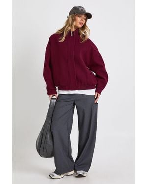 Funnel Neck Wool Look Bomber Jacket - Grey