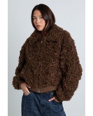 Onion Quilt Faux Fur Teddy Jacket - Natural