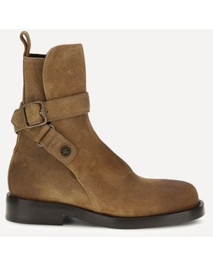 The talented Thomas Burberry established Burberry in 1856. Today, the luxury brand is famed all-over the world for its signature tartan print and iconic equestrian logo. With Christopher Bailey at the helm, Burberry has been cunningly reinvigorated as the go-to brand for contemporary cuts, captivating agelessness and refined appeal. Burberry's line of ankle boots takes on the brand's stylish and timeless signature aesthetic. From bold military-inspired boots to casual lace-up styles, this line is your go-to for anything ankle boot.