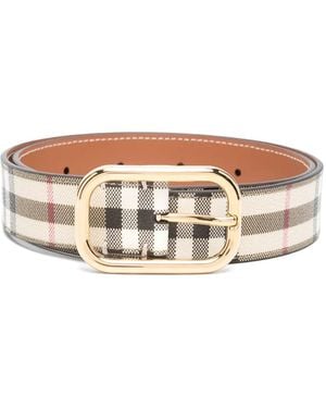 Burberry is an internationally recognisable brand, a luxury British fashion house with lines in everything from sunglasses through to fragrances. While the label's distinctive tartan pattern was once its calling card, the brand now sets trends across women's and menswear with the Burberry Fashion Week show one of the most anticipated. The range of belts from Burberry incorporates several of the Burberry checks, including the Horseferry check and the Springfield Haymarket check. There are hand painted waist belts, double buckle alligator leather belts and skinny bow detail leather belts. The range also includes perforated leather and a number of reversible styles too.