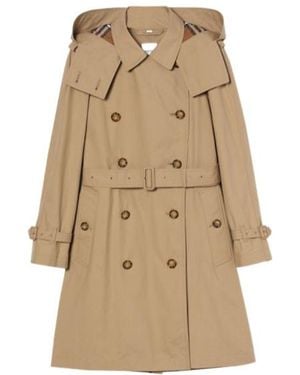 Detachable Hood Taffeta Trench Coat - Brown