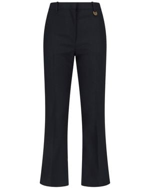British luxury fashion retailer Burberry is a well-established name on the global fashion scene. The brand was established in 1856 and has gone on to develop three separate sub-brands - Burberry Prorsum, Burberry Brit and Burberry London, each of which has a slightly different aesthetic. The line of pants from Burberry incorporates that latest lines and designs, as well as some classic looks. There are skinny leather pants and skinny mid-rise jeans, wool-blend tailored pants and stretch cargo pants, as well as flannel pants and pants in the classic check design. The line also incorporates dramatic flares and ottoman pants too.