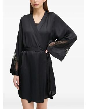 Lace Sleeve Tie-Waist Robe - Black