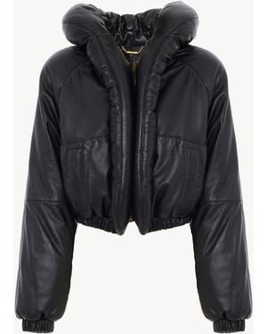 High-neck Puffer Jacket In Shiny Nylon - Black