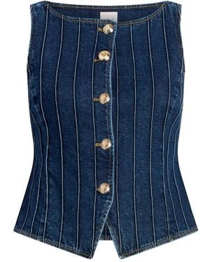 Denim Pintuck Button Vest - Blue