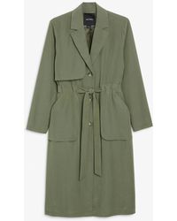 Premium Olive Satin Balloon Sleeve Trench Coat - Multicolour