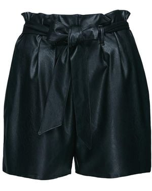 Faux Leather Paperbag Short, Slg453 - Black