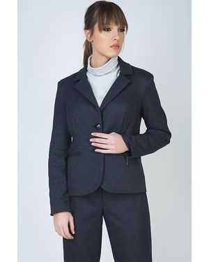Button Blazer With Zip Detail - Blue