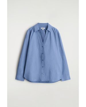 Open-Collar Cotton-Poplin Shirt - Blue