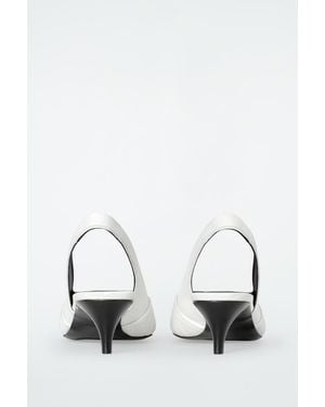 Perforated Leather Slingback Heels - White