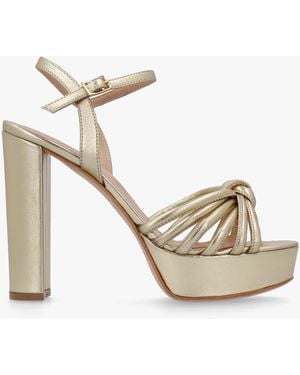 Aknot Gold Leather Platform Heeled Sandals - Natural