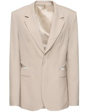 Single-Breasted Wool Interwoven Suit Jacket - Natural
