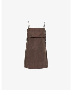 Ida Sleeveless Fold-Over Woven Top - Brown