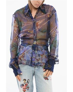 Chiffon Blouse With Abstract Print - Blue
