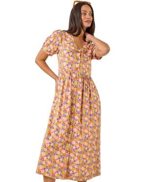 Ditsy Floral Buttoned Midi Dress - Yellow