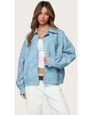 Oversized Washed Faux Leather Jacket - Blue