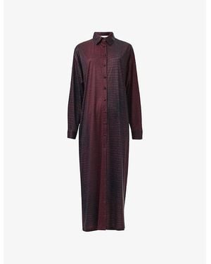 Abstract-Print Relaxed-Fit Stretch-Woven Maxi Shirt - Purple
