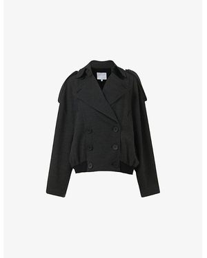 Trench Double-Breasted Woven Bomber Jacket - Black