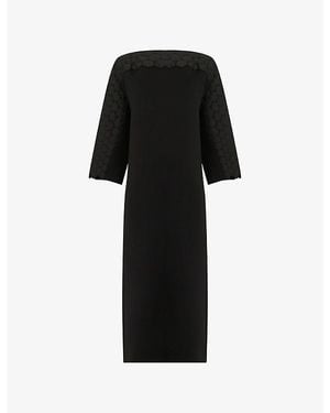 Quilted Embroidered Wool-Blend Midi Dress - Black