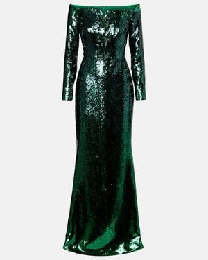Sequined Off-Shoulder Gown - Green