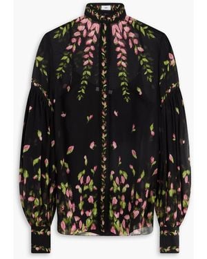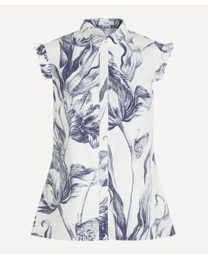 Ruffled Floral-Print Cotton-Poplin Blouse - Blue