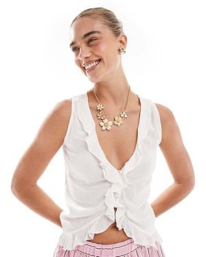 Esmee Exclusive Beach Top With Frill Neckline Detail - White