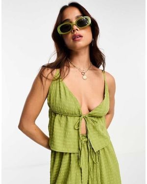 Esmee Exclusive Beach Textured Tie Front Top Co-Ord - Green