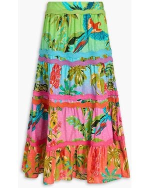 Tiered Floral-Print Cotton-Poplin Midi Skirt - Multicolour