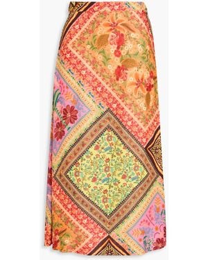Floral-print Satin Midi Skirt - Orange