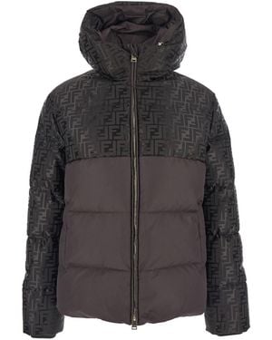 Down Jacket With Drawstring Hood And Ff Motif - Black