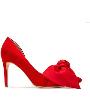 Samantha Suede And Oversized Satin Bow Open Sided Stiletto - Red