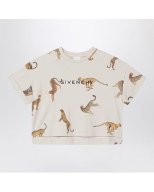 Cream Crop T-Shirt With Leopards - White