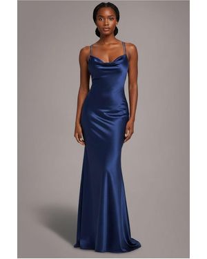 Cowl Neck With Strappy Back Satin Maxi - Blue