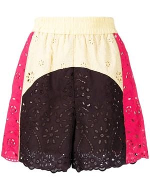 Broderie-Anglaise Floral-Lace Track Shorts - Multicolour