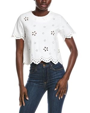 Embroidered Eyelet Crop Top - White