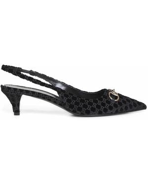 GG Mesh & Suede Slingback Pump - Black