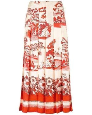 Porcelain Garden Print Midi Skirt It 40 (us 4) - Red