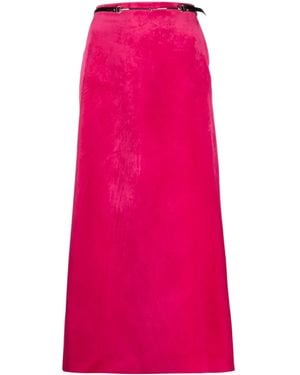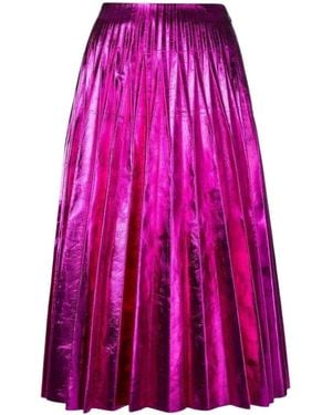 Pleated Metallic Leather Midi Skirt - Pink