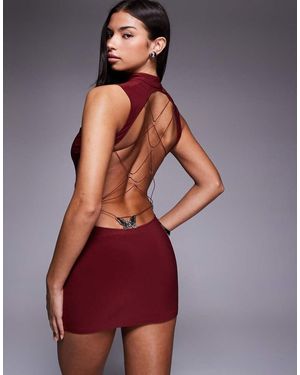 Larisa Slinky Keyhole Detail Open Cross Back Butterfly Pattern Hardware Mini Dress - Purple