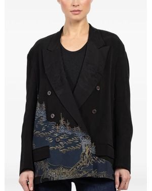 Double-Breasted Printed Jacket - Black