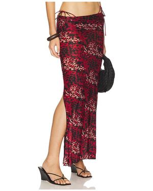 Mickey Printed Maxi With Side Splits & Foldover Waist Panel Skirt - Red
