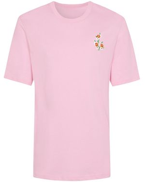 Floral Embroidered T-Shirt Organic Cotton - Pink