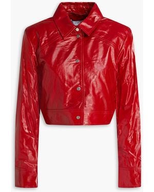 Cropped Crinkled Leather Jacket - Red