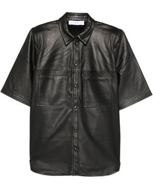 Lamb Leather Long-Sleeve Shirt - Black