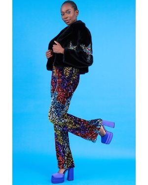 Bamboo Faux Fur Sequins Star Jacket - Blue