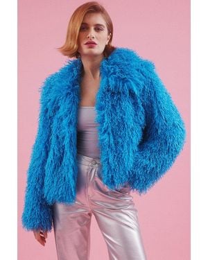 Bamboo Lyocell Blend Faux Mongolian Fur Jacket - Red