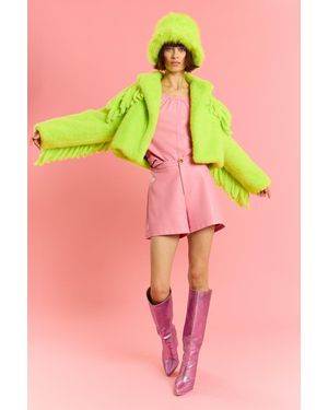 Hand Cut Tassels Bamboo Lyocell Blend Jacket - Pink
