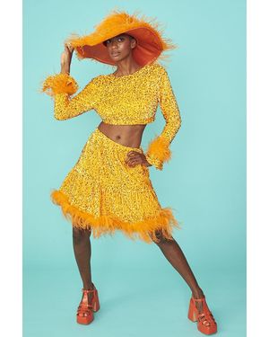 Sequin Cropped Long Sleeve Top With Feather Trim Size: S - Blue