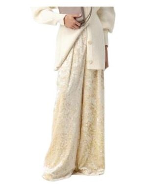 High-Shine Wide-Leg Trousers - Natural