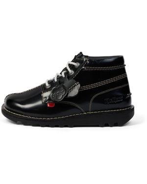 Kickers was established in Cholet, France in 1970. Founder Daniel Raufast teamed up with friend and designer Jacques Chevallereau to begin working on the first designs for their iconic blue jean concept boots. Kickers boots are both classic and contemporary. Highlights from this exclusive collection include fashion-forward patent high-tops, cute suede ankle boots, and contrast cowboy style knee-length boots.